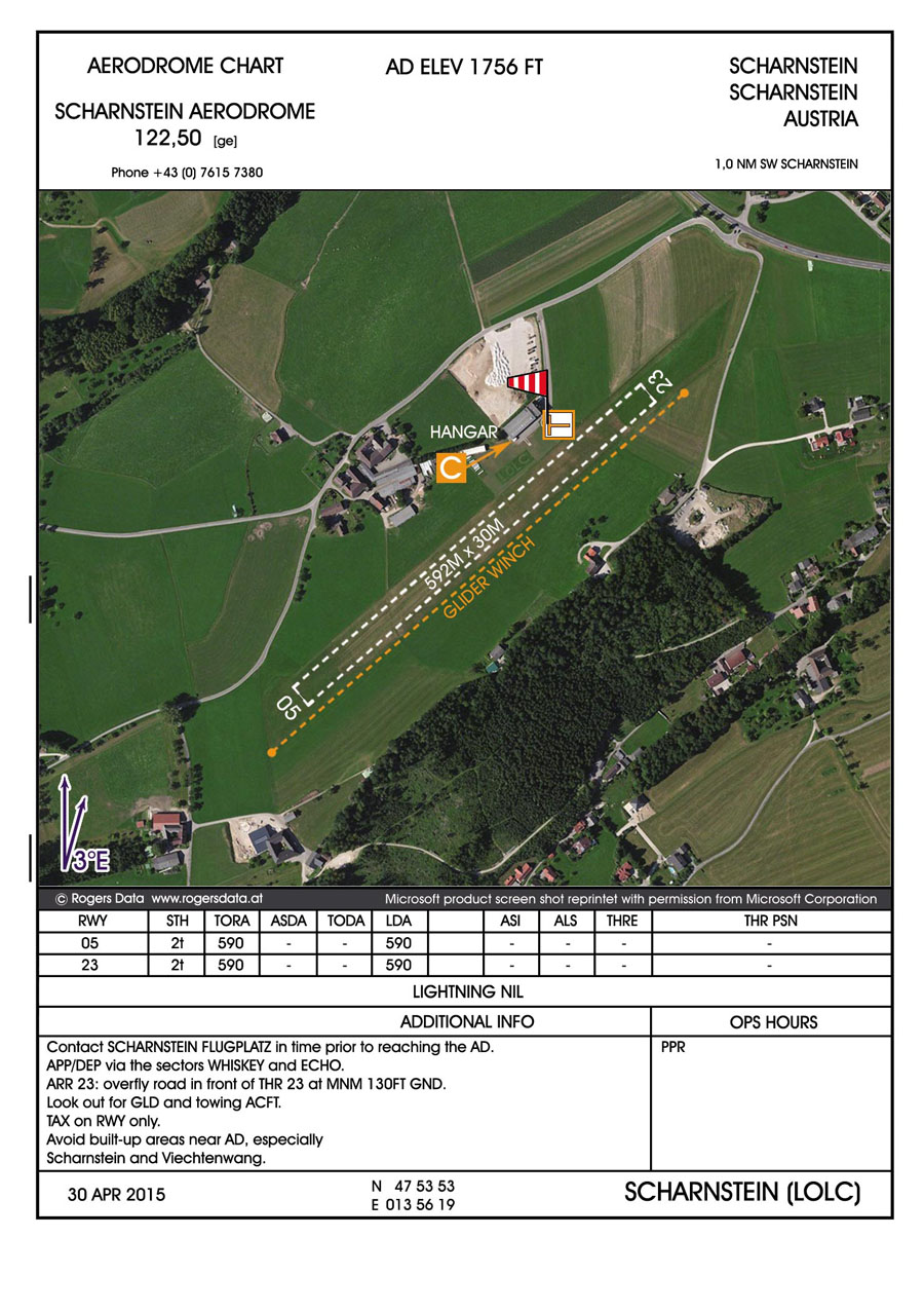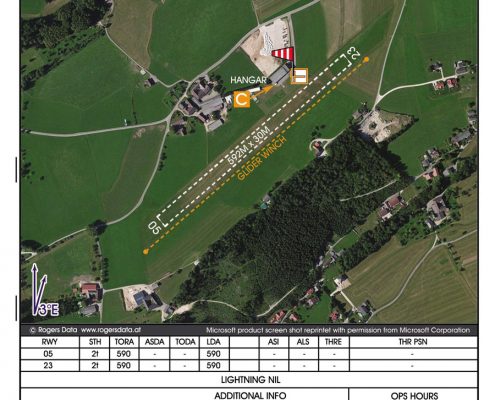 Landebahn: RWY 04 / 22 – 590m Grass – ELEV 535m MSL